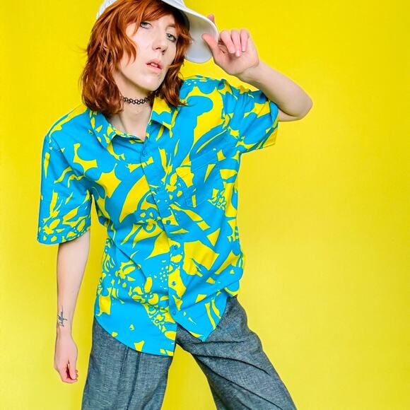 #hawaiianshirt #floralpattern #blueandyellow #boldcolors #vacationstyle