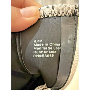 Tag details: 6.5M; Made in China; Manmade upper; Rubber sole; RN# 58665