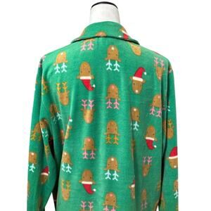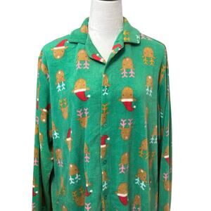 Abound Collared Sleep Shirt Reindeer Print Long Sleeve Green Women's Medium NWOT