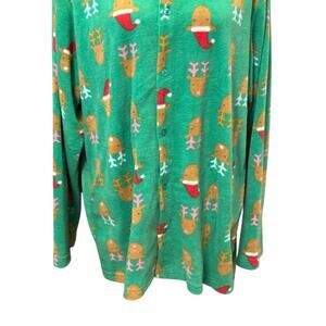 Celebrate the holiday season in comfort with this Abound women's collared sleep shirt featuring an adorable reindeer print on a vibrant green background. Made from a soft polyester blend, this sleep shirt offers long sleeves button down and a classic collared neckline for a cozy and stylish loungewear option.
