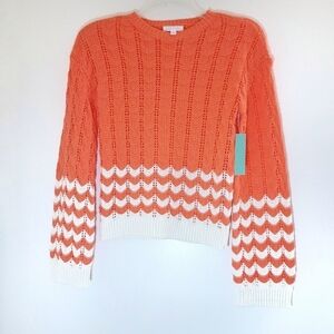 ▪︎ STATS: Long Sleeved, Coral and Ivory Stripes Pattern on a Pointelle Knit Sweater