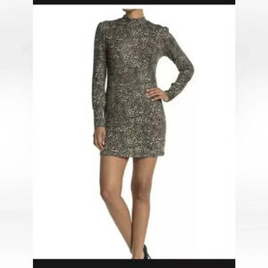 Abound Cozy Mock Neck Long Sleeve Knit Dress In Beige Layered Leopard Size S EUC