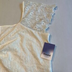 Keywords: lace top, crop top, square neck, ruffle sleeve, cream top, Abound, boho, romantic, feminine, party top, summer top