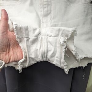 These shorts are in gently used condition. They are lightweight slightly stretchy denim. They are factory distressed cutoffs. Please see photos for details.