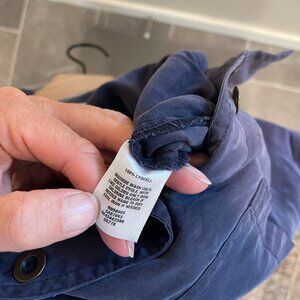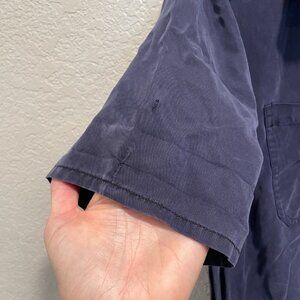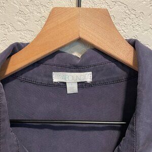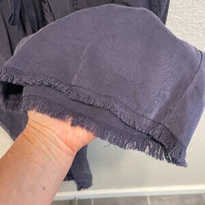 Great condition - has distressing (see photos of sleeves), raw hemline, relaxed super soft fit, tied waist, button front wide leg jumpsuit from Abound. Pretty blue/gray color, size small