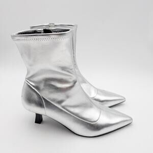 Abound Erinn Pointed Toe Heel Boot Women's Silver Metallic Size US7.5M EU38