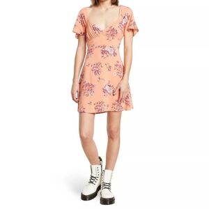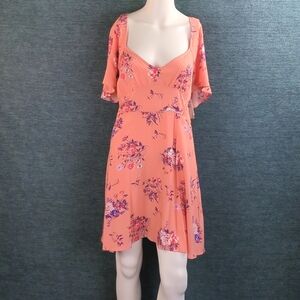 Flutter sleeves, sweetheart neckline, wide, contoured waistband, empire waist.