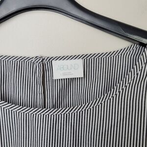 Breathtaking Blouse by Abound. 100% cotton is lightweight and breathable. Black and white pinstripes are classy and timeless. The Dramatic Flutter sleeves are eye-catching and flattering. The perfect top for the office or brunch or a date. Excellent condition. Tagged size large, measures approximately 25 inches long 22 inches underarm to underarm laid flat.