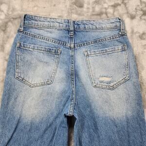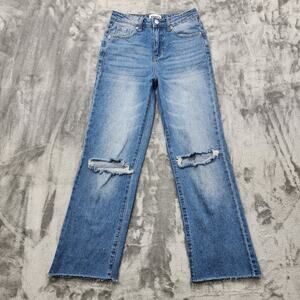 Abound Jeans Womens 24 Blue High Rise Wide Leg Crop Ankle Raw Hem Stretch Denim Distressed Ripped