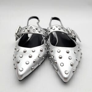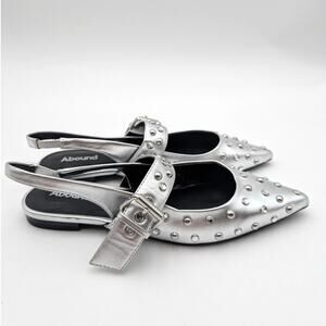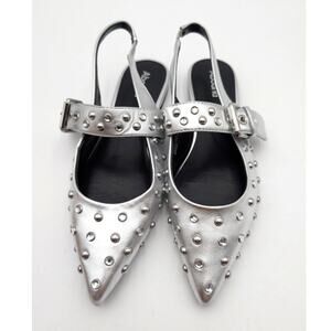 Abound Kadia Slingback Pointed Toe Flat Women's Silver Metallic Size US7M EU37.5