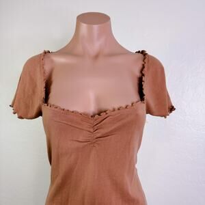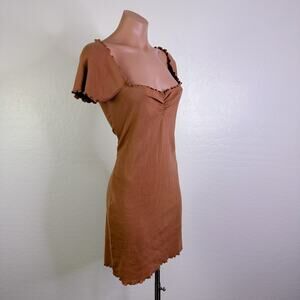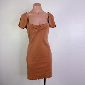 Abound Lettuce Edge Short Sleeve Mini Dress Casual 90s y2k Tan Mocha Medium NWT