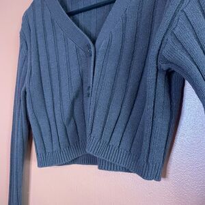 With ribbed knit construction and a cropped length, this is definitely not your grandma's cardigan.