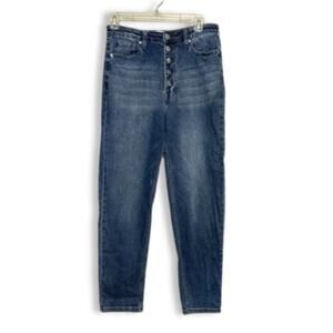 Abound Mom Jeans Straight Leg Stretchable High Rise Button Fly Blue W US 27 NWT