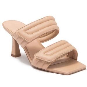 Abound Shoes Womens Size 6 Qarly Heeled Tan Square Toe Slip On Sandals