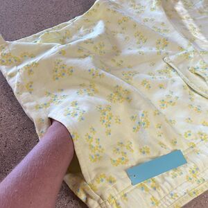 Abound Organic Cotton French Terry Shorts Yellow Ditsy Floral. Features super soft organic cotton in an allover yellow and aqua floral print, elastic waistband with tie, fully functional side pockets, split hemline. Brand new with tags and no flaws to note. See pics for measurements.