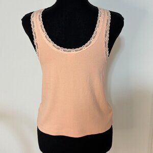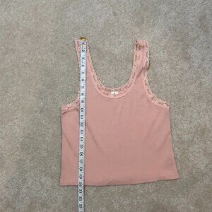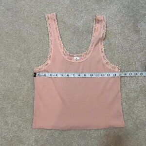 Abound Peach Orange Ribbed Tank Top with Lace Trim - Size XL