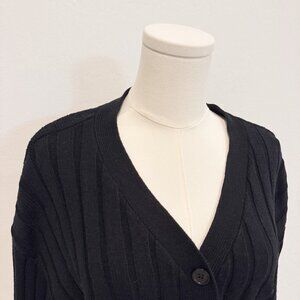 Abound Ribbed Knit Button Up Cardigan Sweater Preppy Academia Nordstrom Black XL