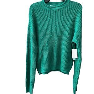A ribbed knit long sleeve sweater features a relaxed fit for cozy style. - Crew neck - Long dolman sleeves - Pullover style - Ribbed knit construction - Approx. 24" length Imported