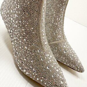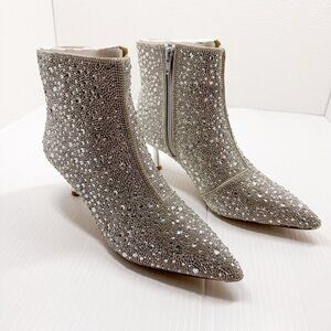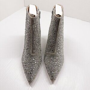 Abound Silver Rhinestone Ankle Boots 7M Sparkle Glitter Pointed Toe Party Heels