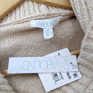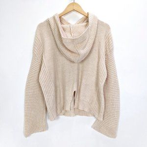 Abound Size M Womens Cozy Ribbed Knit Hoodie In Beige Oatmeal Light Heather