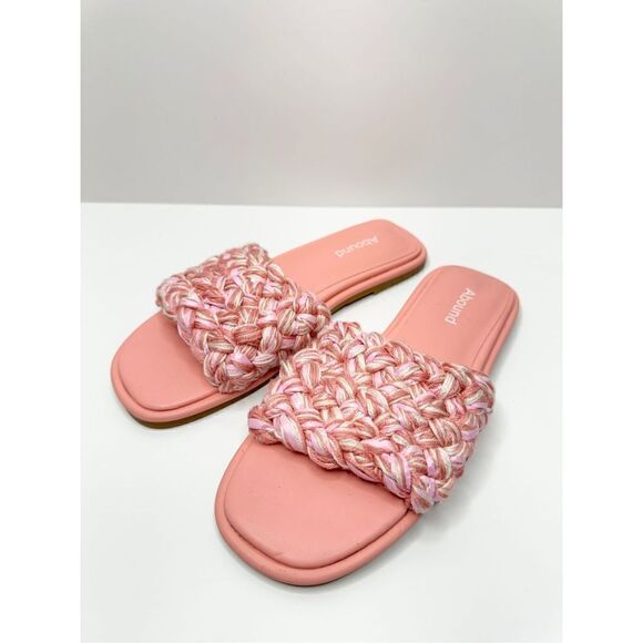 Abound Slide Sandals Womens Size 5 Pink Woven Slip On Open Toe Flats