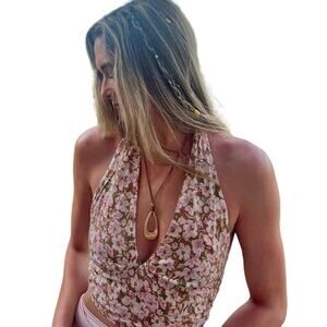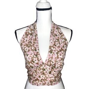Abound Smocked Sleeveless Deep V Crop Floral Halter Top. Excellent preowned condition, no flaws.