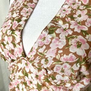 Abound Smocked Sleeveless Deep V Crop Floral Halter Top Tropical XL Boho Brown