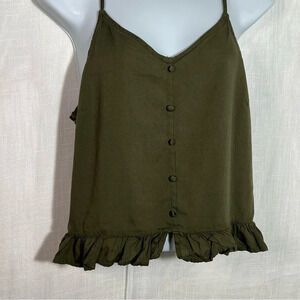Abound Solid Button Front Loose Simple Ruffle Hem Summer Cami Top Size Medium