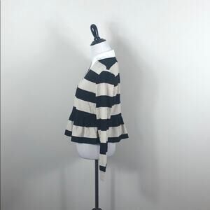 Abound black and beige striped collared split neck shirt. Long sleeves. Makeup on collar from retail environment - should come out after washing. 100% cotton. New with tags.