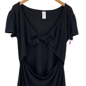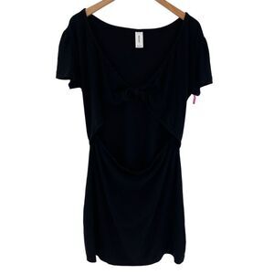 Abound Tie Front Rib Knit Stretch Mini Dress Short Sleeve Cutout Black Large