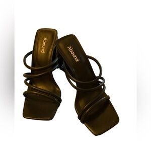 Abound Women Austyn Block Heel Strappy Sandals Size 6.5 Black Slide Faux Leather