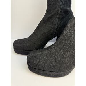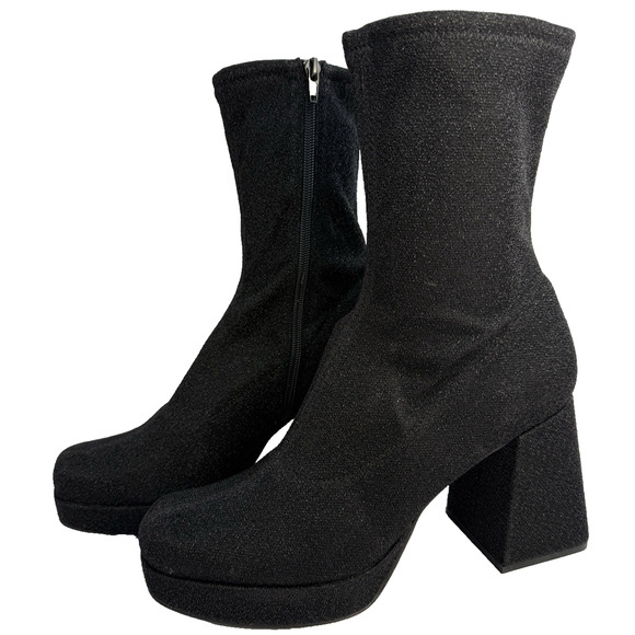 Abound Womens 7 Black Sparkle Fabric Zip Ankle Platform Block Heel Boot NWOT