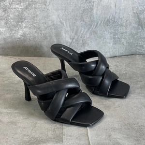 Abound Women's Black Faux-Leather Violeta Puffy Strap Square-Toe Mule Sandals SZ 9