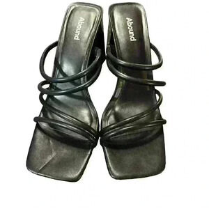 Abound Women's Size 11M Black Pumps 4" Strappy Open Toe Block Heels