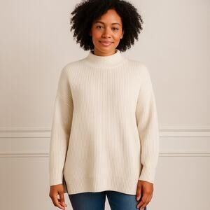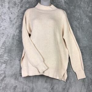 Abound Women’s Size L Beige Mock Neck Split Hem Tunic Sweater Pullover NWT