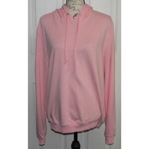 Abound Womens Solid Drawstring Cotton Blend Hoodie Pullover in Pink Candy Large
