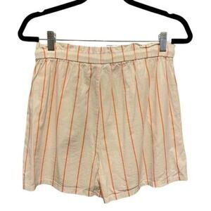 Abound Womens Striped Elastic Waist Shorts S White & Orange Cotton/Rayon Blend
