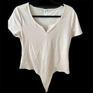 Abound Women's XL Ivory Ribbed V-Neck Short Sleeve T-Shirt