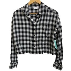 Abound black white Tibetan Dobby Plaid Top Size Small NEW