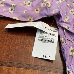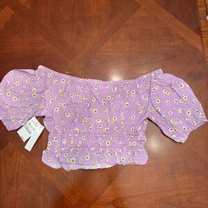 NWT, size M Floral of the shoulder puff sleeve crop top 100% rayon
