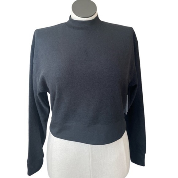 Abound sweater crop teddy bear long sleeve crew neck NWT top black Sz Small