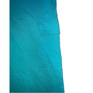 Teal green cargo pants. High rise. Two pockets. Elastic waistband and hem. 60% cotton and 40% rayon. Size: Large. NWT