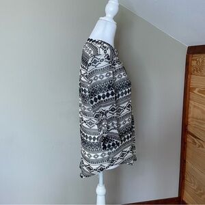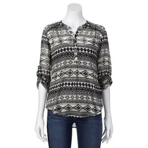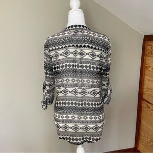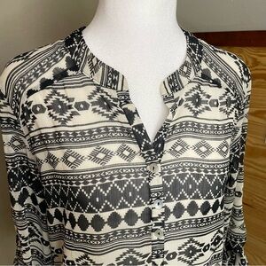 About A Girl Juniors Black & White Chiffon Aztec Print Henley Top Small
