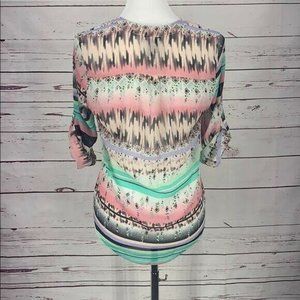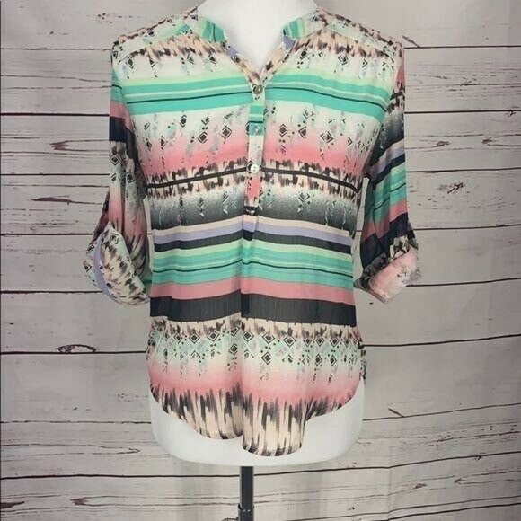 About A Girl Los Angeles Sheer Aztec Southwest Print Blouse Size Small