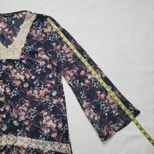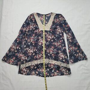 About A Girl Los Angeles Women's Sheer Floral Lace Trim Bohemian Blouse Size Medium
