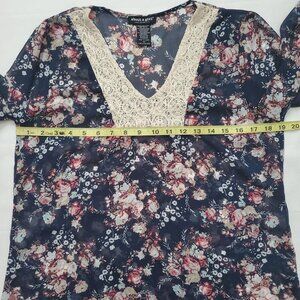 About A Girl Los Angeles Women's Sheer Floral Lace Trim Bohemian Blouse Medium