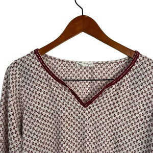 About A Girl Red and White Peplum Floral Blouse Womens XL Lace Detailing Top