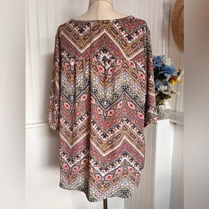 About A Girl V Neck Red White Black Aztec Print Tunic Size 2 X