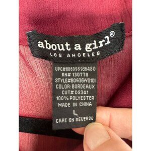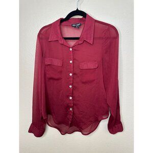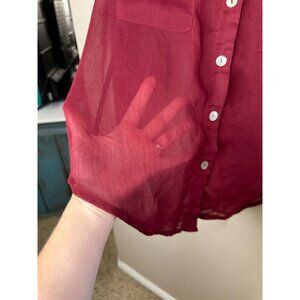 About A Girl Womens Maroon Blouse L Sheer Button-Up Long Sleeve 100% Polyester