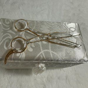 About Face Designs 1999-2009 Glass Scissors, Hand Crafted & Painted in 24 Karat Gold on Glass Designed for gift giving to Beautician